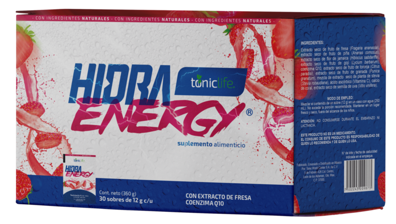 Recárgate de energía con el delicioso sabor de Hidra Energy, mientras obtienes todos los beneficios de su poderosa fórmula a base de fresa, piña, jamaica, goji, coenzima Q10, toronja, granada, stevia, vitamina C, calcio de coral y semilla de uva los cuales lo convierten en un excelente antioxidante.